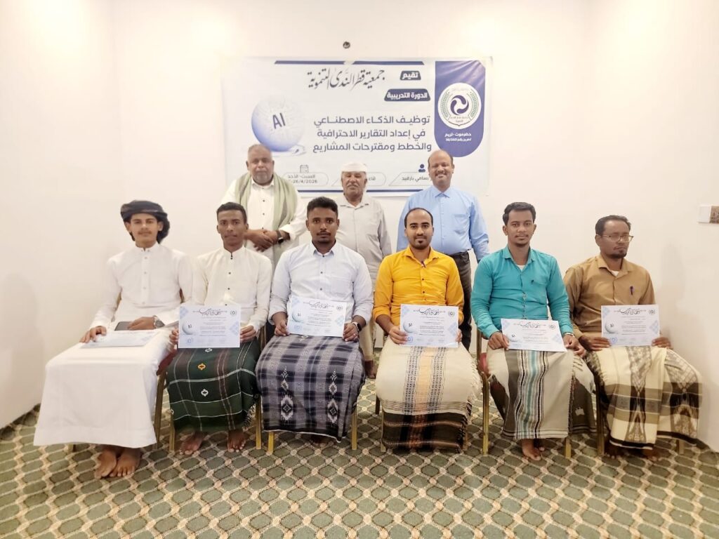 وفي ختام الدورة، تم توزيع شهادات مشاركة للمتدربين، بحضور رئيس الجمعية الأخ منصور بامفروش، الذي أشاد بدور البرامج التدريبية في بناء قدرات الكوادر المحلية وتعزيز جاهزيتها لمواكبة التطورات الحديثة في العمل التنموي.
